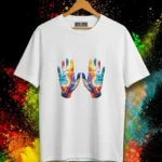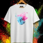 A vibrant premium white tee celebrating Holi with bold splash typography and playful color accents. Festive energy meets luxury streetwear attitude.