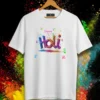 A vibrant premium white tee celebrating Holi with bold splash typography and playful color accents. Festive energy meets luxury streetwear attitude.