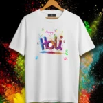 A premium white statement tee featuring vibrant artistic hand graphics inspired by Holi energy. Where bold color expression meets luxury streetwear attitude.