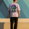 This oversized lilac/mauve tee blends intergalactic cool with urban style. The back features a vibrant graphic of a green alien head sporting a purple hoodie, cap, and shades, ready to conquer the street.